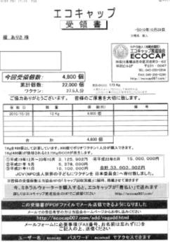| 2010年10月 4800個 累計22.000個 ワクチン27,5人分 |