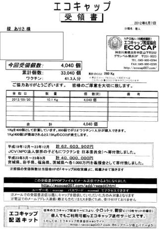 | 2012年6月 4040個 累計33040個 ワクチン41.3人分 |